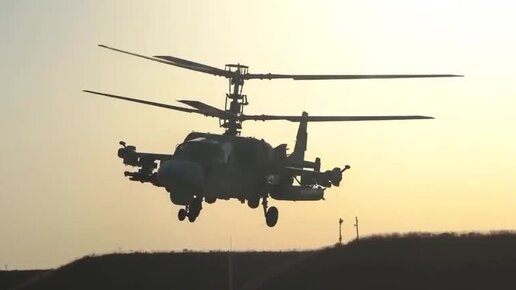 Во-первых, это красиво. Вертолеты Ка-52 разматывают баржу, которая вышла из Никополя в Энергодар.