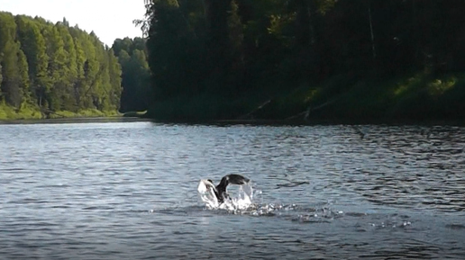 Утка притворяется раненой и уводит лодку от утят