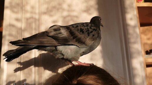 Встречаем рассвет вместе! Птенец Голубя чуть свет уж на ногах или на голове! 😂