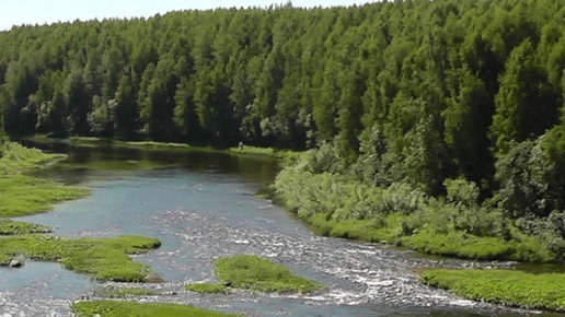 Проход моторной лодки по порогам лесной реки