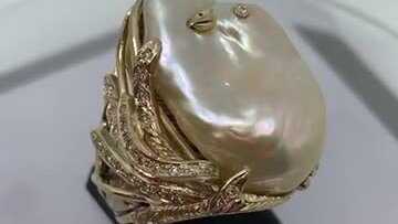 Кольцо "Птица". Барочный жемчуг и бриллианты. Ручная работа.