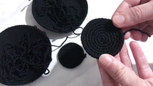 Связала 4 черных круга из остатков пряжи и соединила. Получилась необычная вещица для хранения ключей и мелочей, показываю