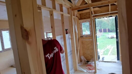 16 день нашей стройки каркасного дома Витязь 3, уже обиваем внутри вагонкой стены