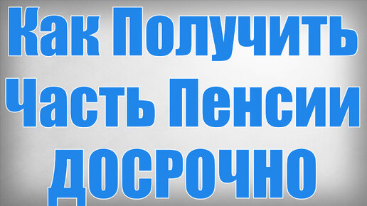 Как Получить Часть Пенсии ДОСРОЧНО