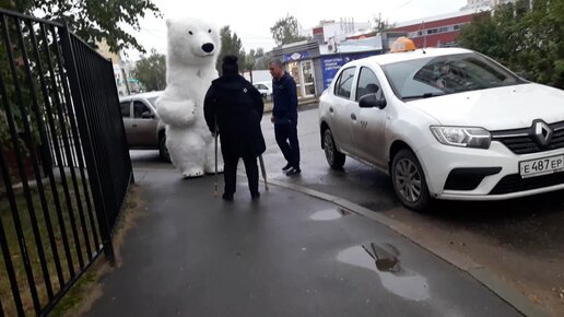 Белый медведь в городе