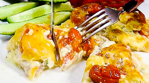 Просто выкладываю начинку сверху и запекаю . Очень вкусно и просто