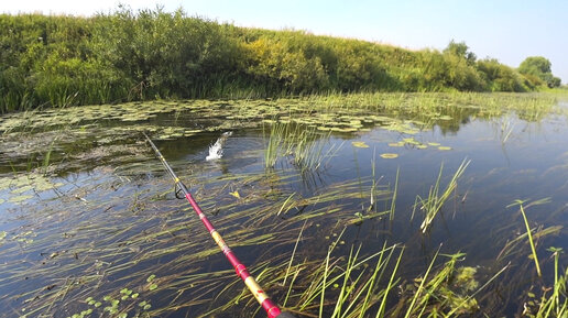 Тут сотни щук, на глубине 15 см. все атаки на виду. Рыбалка спиннинг