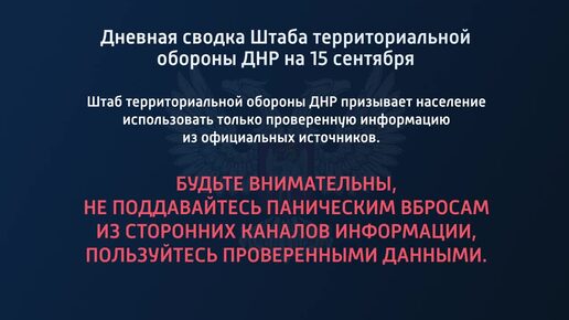 Дневная сводка штаба территориальной обороны ДНР на 15 сентября 2022 года