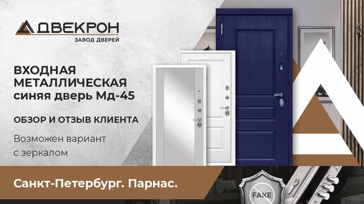 Входная металлическая синяя дверь Мд-45 от завода. Обзор и отзыв клиента. Возможен вариант с зеркалом. Санкт-Петербург. Парнас.