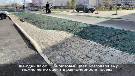 Улица Московкина окрасилась в ярко бирюзовый цвет. Причина — новый метод озеленения, гидропосев