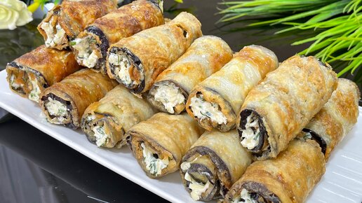 Закуска на праздничный стол! Рулетки из баклажанов.