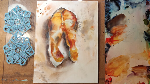 Видеоурок. Кусочек рыбы акварелью.