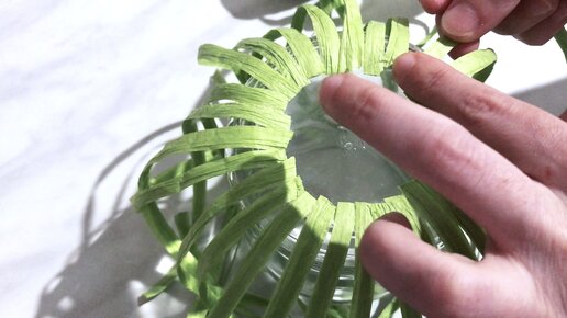 Покрыла стеклянную баночку цветной рафией по 49 рублей. Соседка, увидев мою красоту, пожалела, что все стекло свекрови отдала, показываю