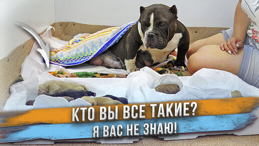 Собака не поняла, что родила щенков! Их много, а она не знает, что с ними делать.