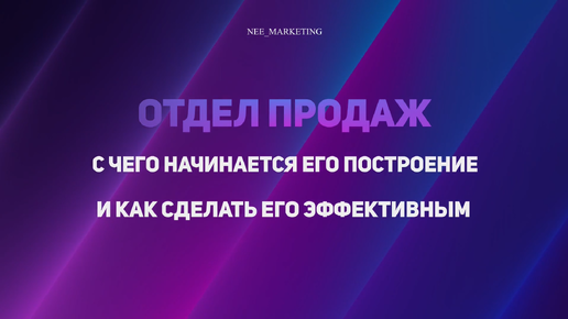 ОТДЕЛ ПРОДАЖ. С чего начать построение и как сделать его эффективным
