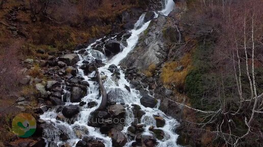 Удивительный Чучхурский водопад, спрятанный в ущелье Домбай-Ульген, недалеко от посёлка Домбай. Карачаево-Черкесия