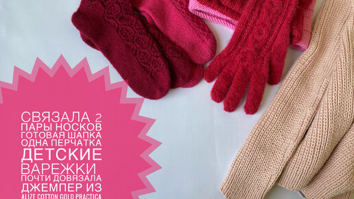 Готовые работы: 2 пары носков, шапка, перчатка, детские варежки из Drops Lima, почти довязала джемпер