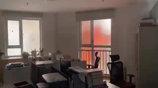 Кадры изнутри небоскреба China Telecom в момент страшного пожара.