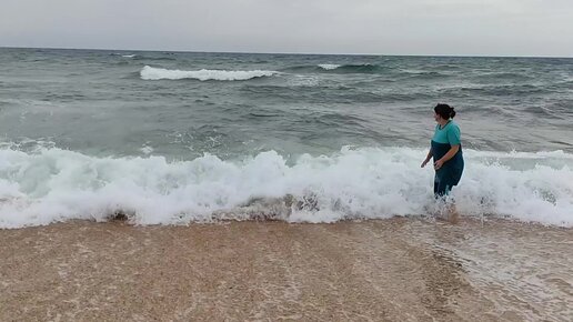 Феодосия, Береговое. Пытаюсь искупаться в штормовом море