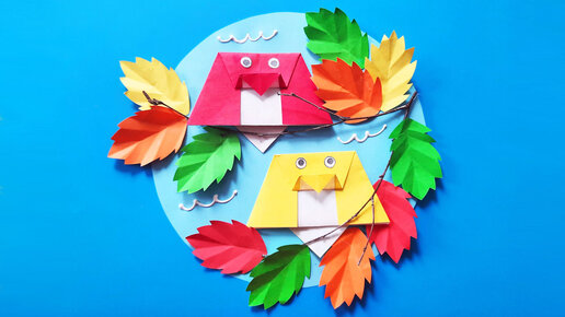 Осенняя аппликация "Две птицы на ветке". Оригами птички