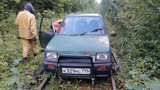 Едем на дрезине по железнодорожной ветке в подмосковных лесах