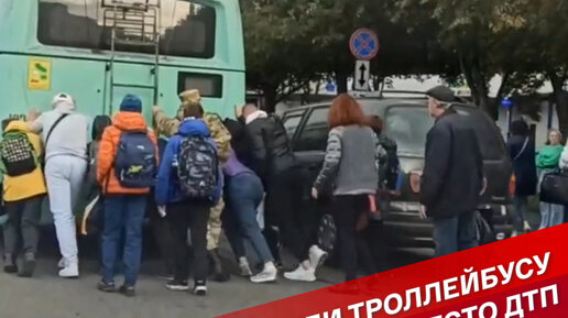 Пассажиры помогли троллейбусу объехать место ДТП