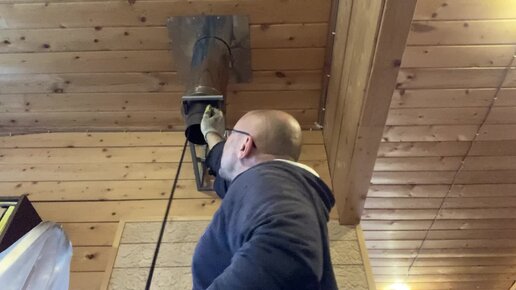 Плановая прочистка дымохода при помощи шомпольного устройства с ершом на конце у наших клиентов в Можайском районе Московской области.