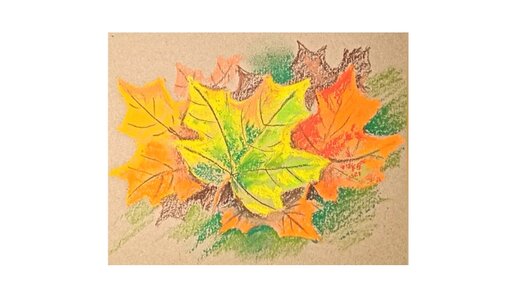 🍁🌞🍁Кленовые листья. Рисунок сухой пастелью не крафтовой бумаге. 🎨🌈🖍
