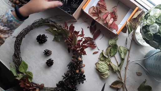 ОСЕННИЙ ВЕНОК ИЗ ПРИРОДНЫХ МАТЕРИАЛОВ своими руками/ AUTUMN WREATH MADE OF NATURAL MATERIALS DIY