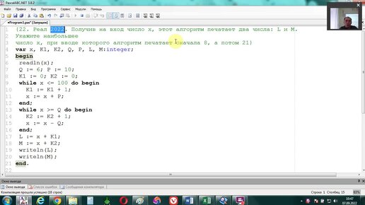 Реальный вариант ЕГЭ по информатике 2022 №22
