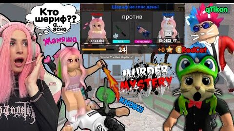 Ютуберский Murder mystery 2 RedCat qTikon Женяша и KN0BZI Кто шериф ЛИГА РОБЛОКС