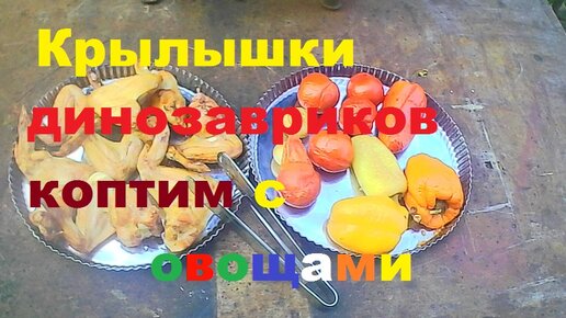 Горячее копчение на вишнёвой щепе крылышки динозавриков с овощами