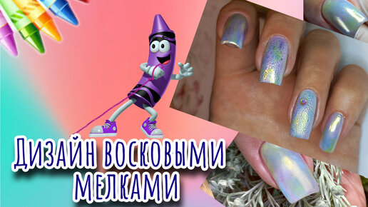Дизайн восковыми мелками. Жидкий полигель вместо акригеля. Жемчужная втирка и ногти русалки.