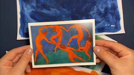 Регина на связи🦋Сегодня я делаю выкраски (заготовки цветной бумаги) для своих коллажей ✨ Идея новых выкрасок - это взять палитру цветов у любимой картины) Я взяла 3 цвета Анри Матисса "Танец".👁👁