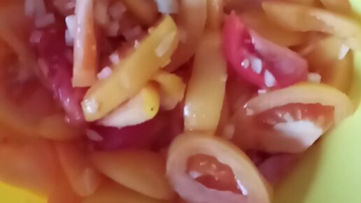 Салат из помидор с луком и горчичным маслом.