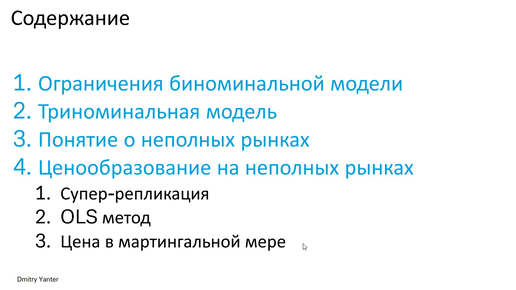 Занятие 11. 2021-12-03. Ценообразование на неполных рынках. Дмитрий Янтер