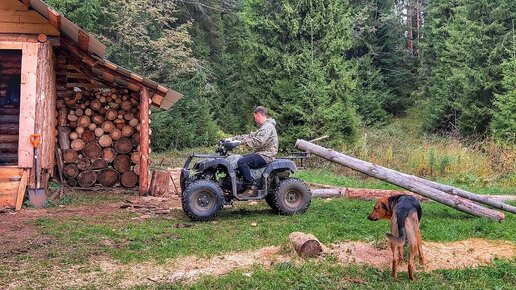 СТРОИМ ПРОСТОЙ И КРАСИВЫЙ ДРОВНИК ИЗ ЖЕРДЕЙ | ТАСКАЕМ ДРОВА НА КВАДРИКЕ | ИЗБА ВСТРЕЧАЕТ ГОСТЕЙ