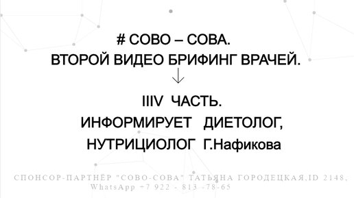#СОВО_СОВА_ВТОРОЙ_ВИДЕО_БРИФИНГ_ВРАЧЕЙ. ВОСЬМАЯ ЧАСТЬ. ИНФОРМИРУЕТ ДИЕТОЛОГ, НУТРИЦИОЛОГ Гульнара Нафикова