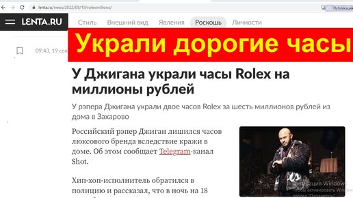 0655 У рэпера Джигана украли двое часов Rolex за шесть миллионов рублей. Спасибо, что взяли деньгами