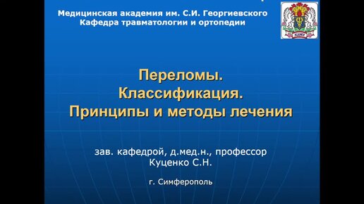 14:00 №1 Переломы Классификация Принципы и методы лечения