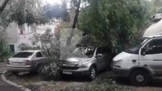 В Рязани из-за сильного ветра на припаркованные машины упало дерево