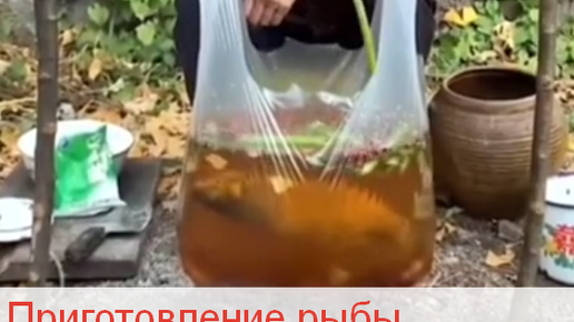 Приготовление тушеной рыбы в пластиковом пакете на огне