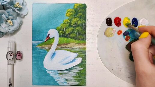 Как легко нарисовать лебедя на озере🦢🌊 Пошаговое видео🎥 Акриловая живопись🎨