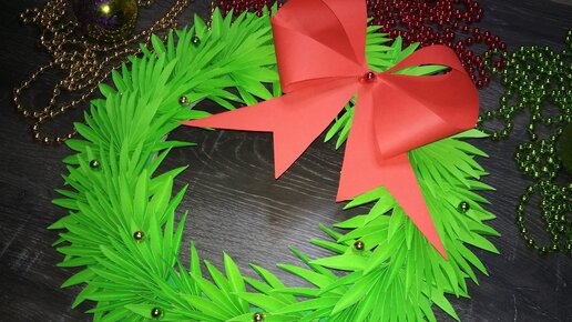 Красивый венок на Новый год и Рождество на стену или дверь из бумаги
