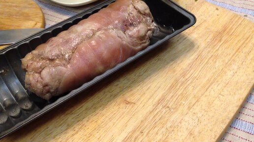 Рулет из рульки в пленке варю больше 3 часов. На срезе выглядит так.