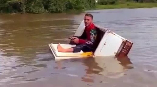 Приколы на рыбалке. Холодильник вместо лодки
