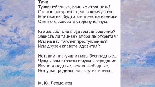 Сочинение "Моё любимое стихотворение М.Ю. Лермонтова "Тучи"