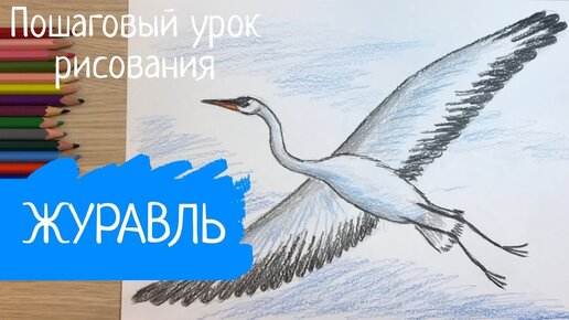 Журавль рисунок Птица рисунок карандашом легкий Летящая птица рисунок Перелетная птица. Карандаши и краски