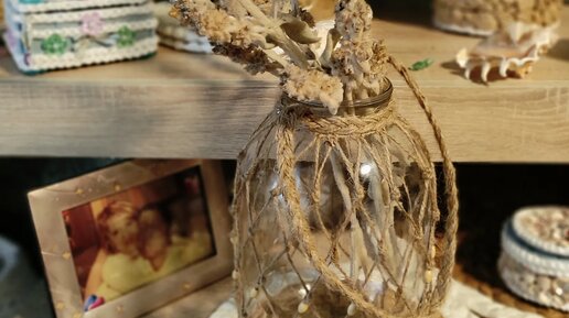 Декорирование банки джутовой веревкой, часть 2😍Набиваю руку😄Думаю про макраме! Все подаренные ракушки ушли на шкатулки🤭