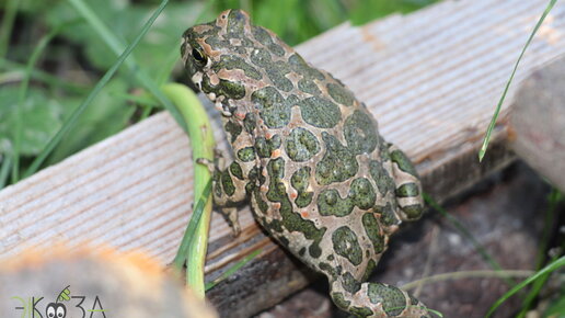 Жаба зелёная ушагивает-упрыгивает под виноград